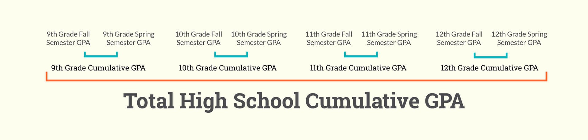 Grade Point Averages (GPA) are one major criterion that colleges and employers will look at to evaluate your potential. Most schools across the country follow a four-point system. The closer you are to a ‘4’ (or an A in the letter grading system) at the end of the trimester/semester and school year the better. Those pluses and minuses on your letter grades in each class also count and can be important in boosting your cumulative GPA, which represents the total of all grade points you earn throughout your high school career.
